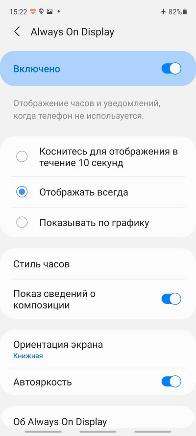 Настройки режима всегда включенного экрана (AOD) - этот режим у смартфонов Samsung самый продвинутый.