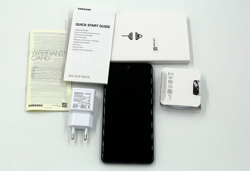 Комплект поставки - минималистичный: смартфон, кабель USB - Type-C, адаптер питания, инструкция, инструмент для вытаскивания вставки под сим-карты и карту памяти.