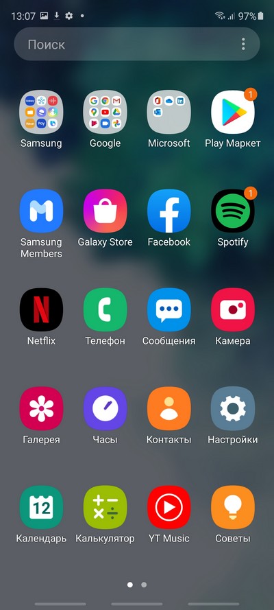 Установленные в системе приложения. Обратите внимание, что их очень немного, причем тут еще часть были поставлены при первой инсталляции по рекомендации Samsung - их можно было и не ставить.