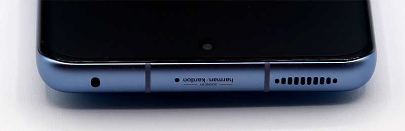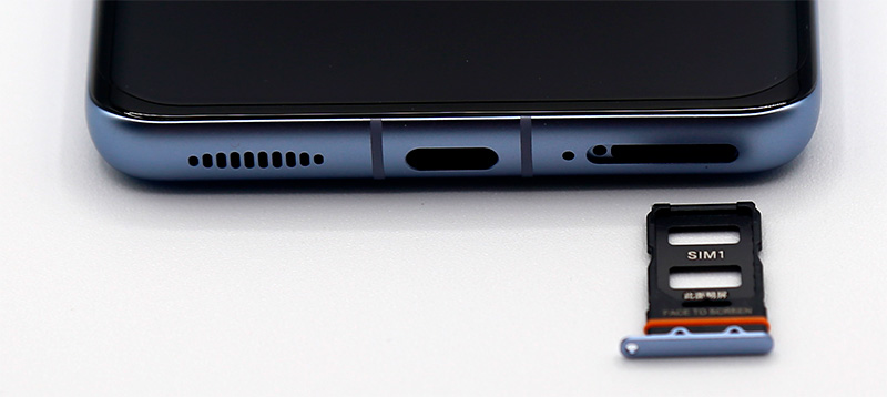 На нижней грани - вырезы над стереодинамиком, порт USB-C, слот для вставки под симкарты.