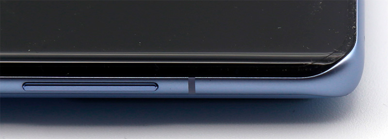 Очень тонкие рамки по краям, селфи-камера располагается сверху по центру.