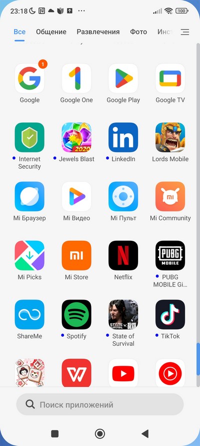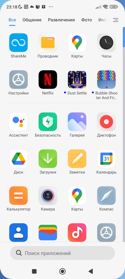 Установленные в системе приложения.