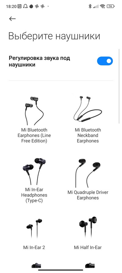 Как обычно, есть настройки под разные типы наушников, звуковые эффекты.