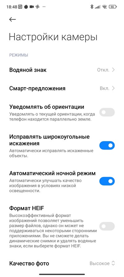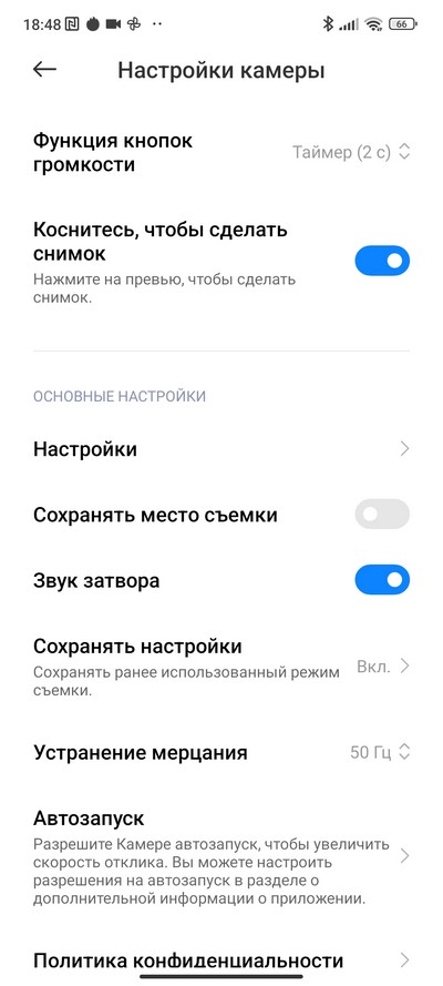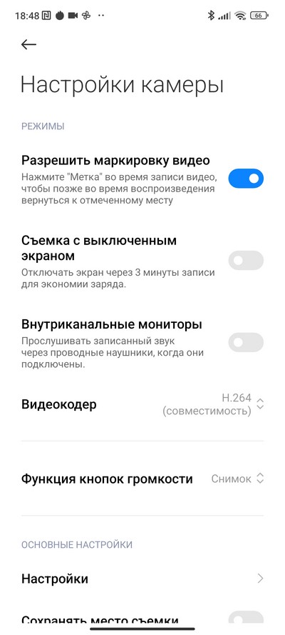 Настройки камеры.
