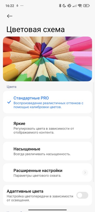 Настройки экрана - стандартные для Hyper OS. Есть темный режим, режим чтения, можно настраивать размер шрифта и масштаб. Частота обновления может подбираться автоматически, а может задаваться вручную.