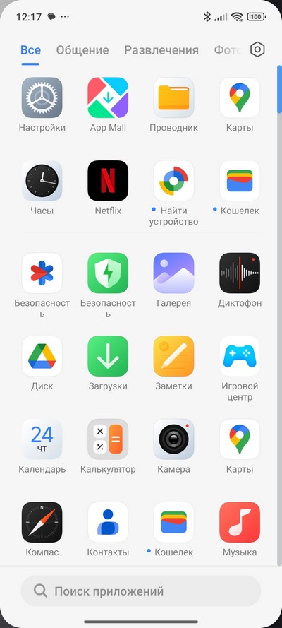 Главный десктоп и установленные приложения.