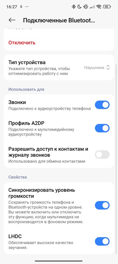 Для проверки беспроводного звучания подключил наушники Nothing Ear (2). Наушники подключились по кодеку AAC, однако в настройках можно было включить и кодек LHDC.