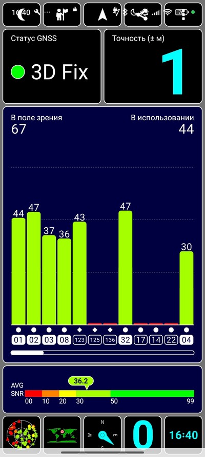 Навигация: GPS (L1+L5), BDS (B1I+B1C+B2a), GALILEO (E1+E5a), NavIC (L5), GLONASS