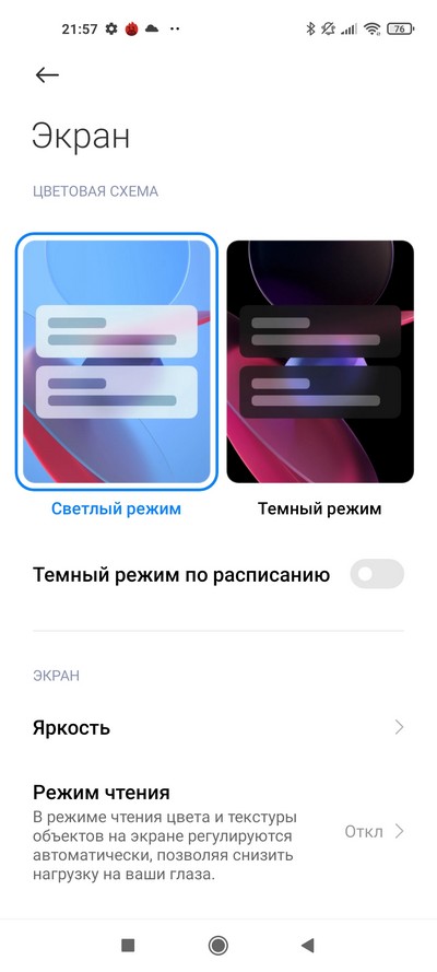 Как обычно у Xiaomi, дисплей гибко настраивается. Есть темный режим, который можно включать по расписанию, есть режим чтения, можно менять частоту обновления с 60 на 90 Гц, изменять размер текста.