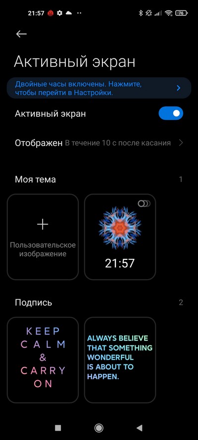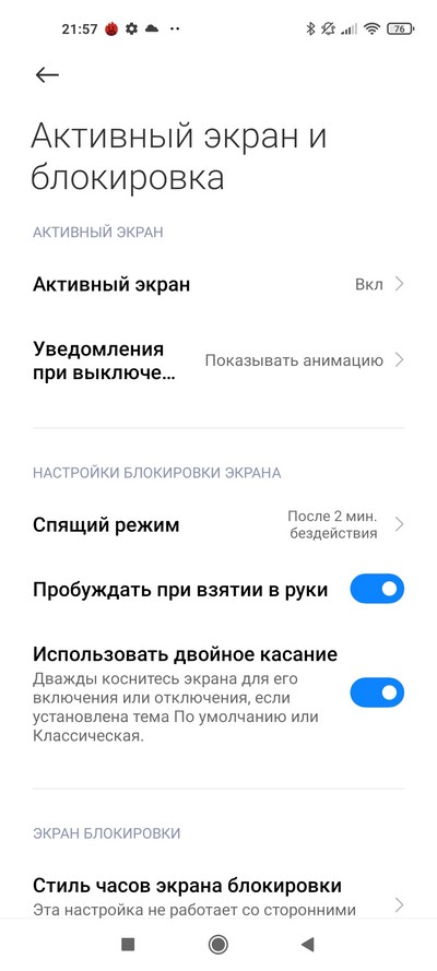 Режим постоянно включенного экрана (AOD) здесь, конечно, есть, но, к сожалению, здесь сделано так же криво, как и у Redmi Note 10 Pro: данные на выключенный экран выводятся только в течение 10 секунд, после чего экран гаснет. Причем если у Redmi Note 10 Pro AOD можно было включить постоянно, отключив в настройках для разработчика "оптимизацию MIUI", то здесь в этих настройках такого пункта нет.