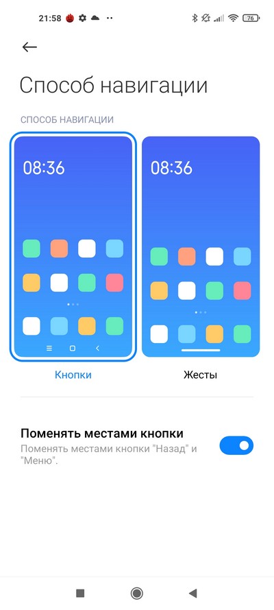 Управлять смартфоном можно с помощью экранных кнопок или с помощью стандартных жестов.