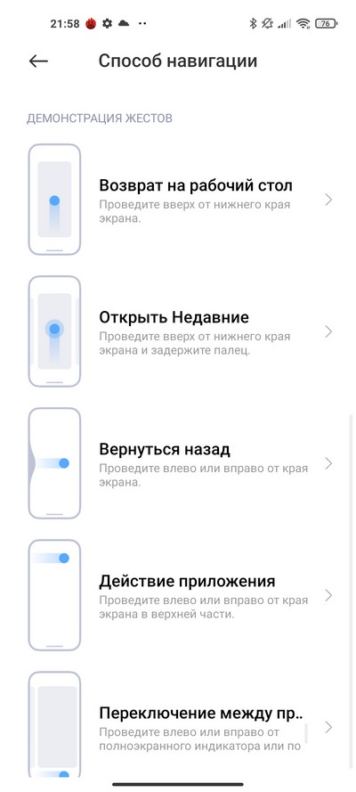 Из дополнительных жестов можно настроить только жест снимка экрана (по умолчанию - жест вниз тремя пальцами).