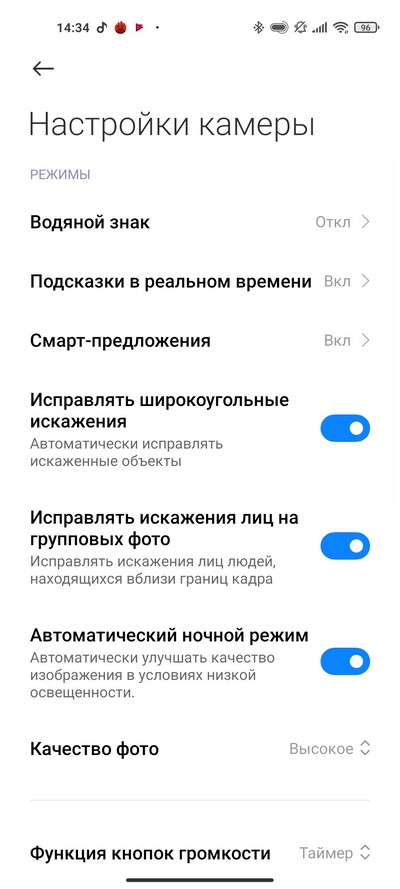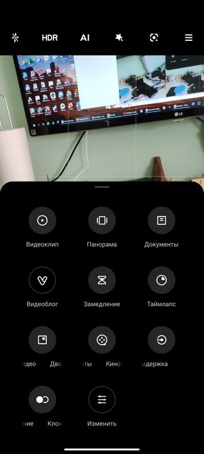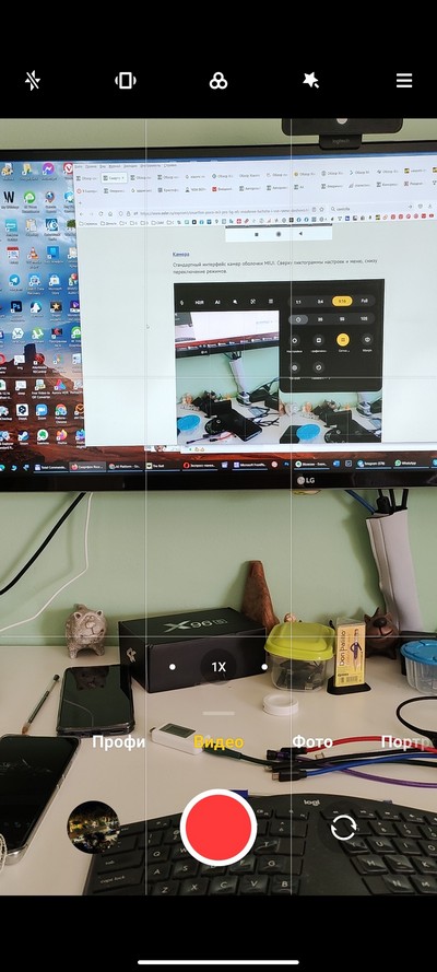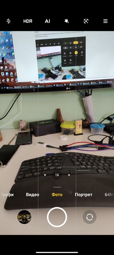 Стандартный интерфейс камер оболочки MIUI. Сверху пиктограммы настроек и меню, снизу переключение режимов. Также можно переключаться на сверхширик и включать 2-кратный цифровой зум.