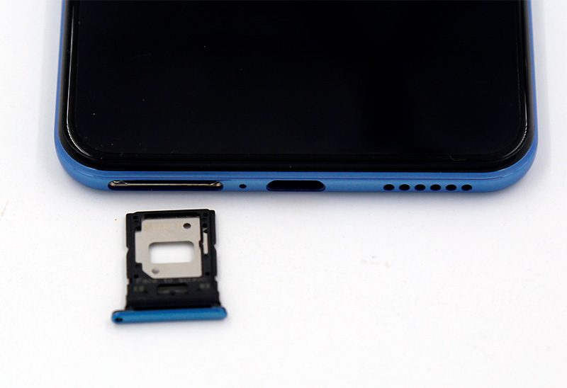 На нижней грани слот для сим-карт и карты памяти, микрофон, порт Type-C и прорези стереодинамика (в качестве второго динамика используется разговорный).
