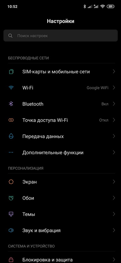 В темном режиме фон системных приложений делается черным: пиксели при этом не светятся и матрица SuperAMOLED тратит очень немного энергии. Впрочем, понятно, что это работает только для системных приложений.
