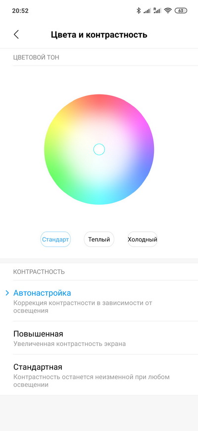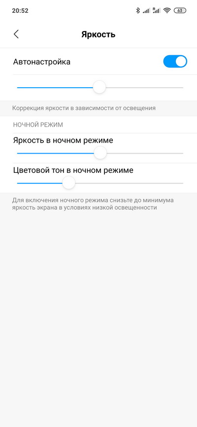 Есть отдельная настройка яркости и цветового тона для ночного режима.