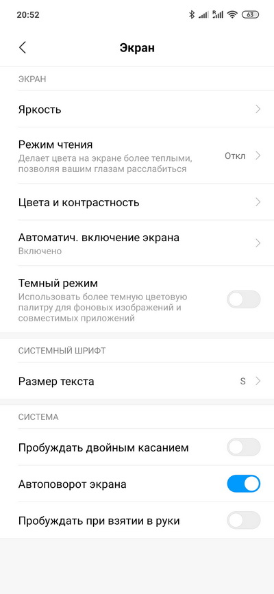 Параметры экрана гибко настраиваются. Есть режим чтения, режим постоянно включенного экрана, темный режим.