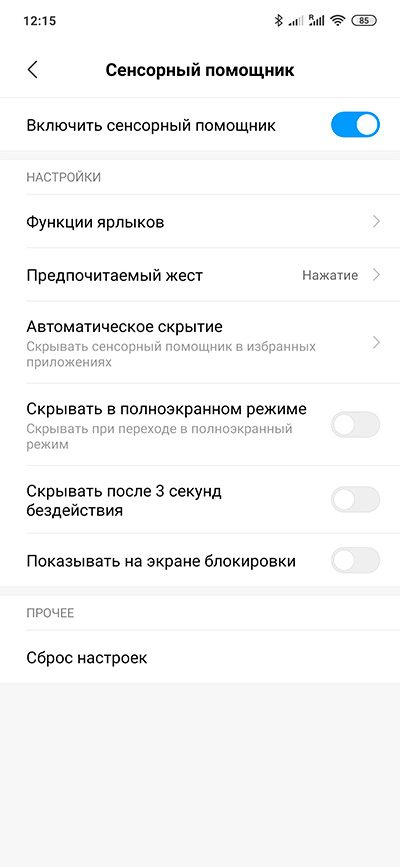 Есть тут и сенсорный помощник: плавающая кнопка, нажатие на которую вызывает пиктограммы: домой, выключить звук, сделать скриншот, вызвать список запущенных программ.