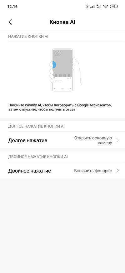 Дополнительная кнопка AI по умолчанию вызывает ассистента Google, но можно навесить свои действия на длинное нажатие и двойное. Жалко, что одиночное нажатие нельзя переопределить: я ассистент Google не использую, мог бы занять кнопку чем-нибудь полезным.