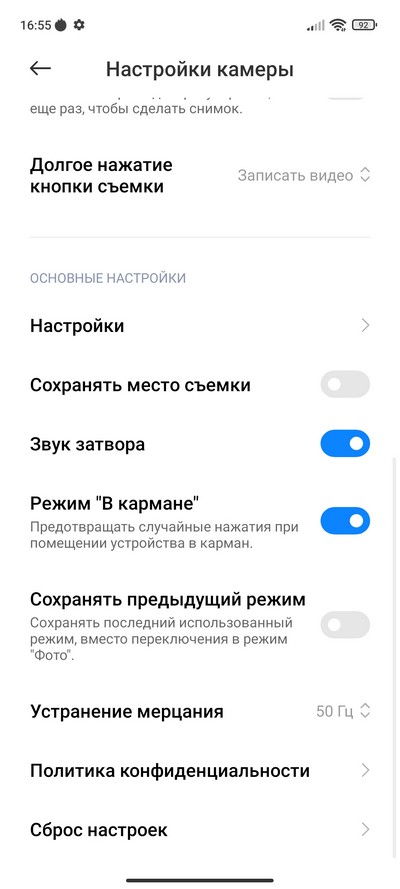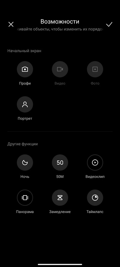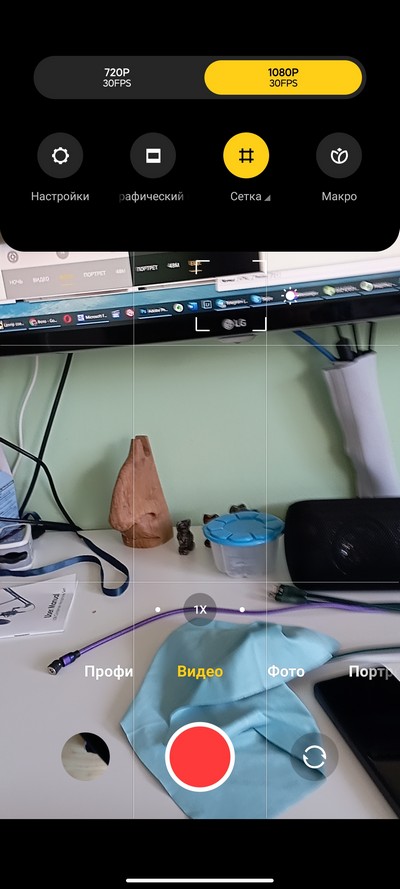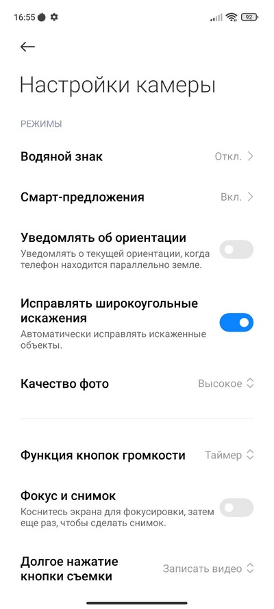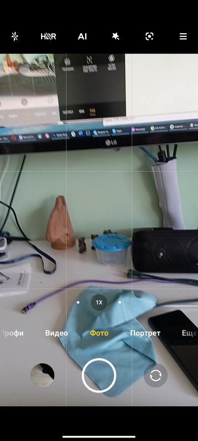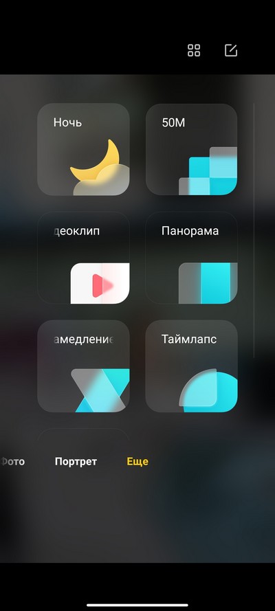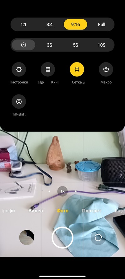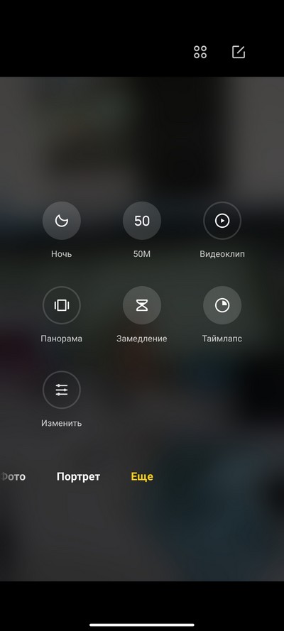 Стандартный интерфейс камер Xiaomi. Сверху - пиктограммы настроек и меню, снизу - переключение режимов.