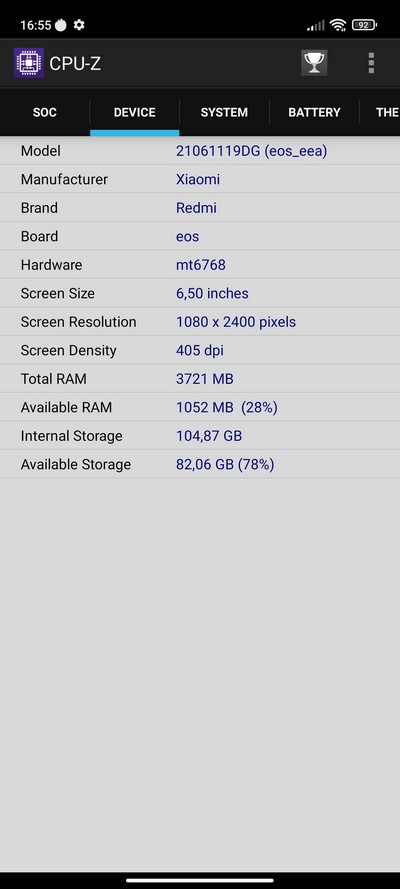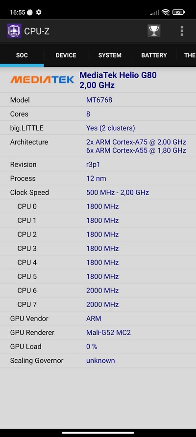 Процессор: MediaTek Helio G88 (12 нм), Octa-core (2 × 2,0 ГГц Cortex-A75 & 6 × 1,8 ГГц Cortex-A55)