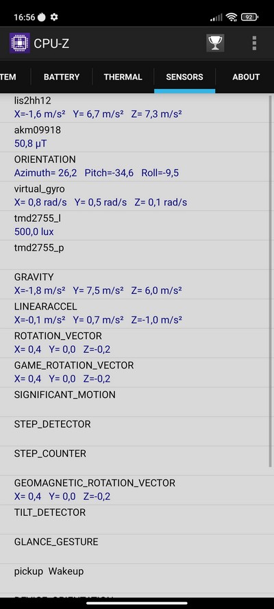 Дополнительно: акселерометр, датчик освещения, приближения, компас, FM-радио