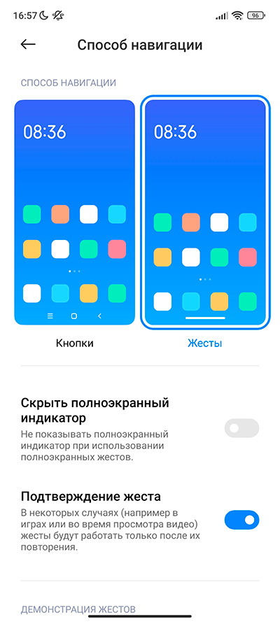 Как обычно, управление смартфоном можно делать с помощью экранных кнопок (настраиваемых) или с помощью жестов. Это настраивается в пункте меню "Безграничный экран". Также дополнительно можно настраивать функции кнопок.