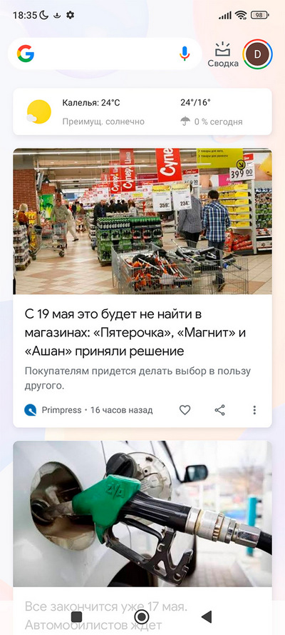Главный десктоп и новости от "Гугла".