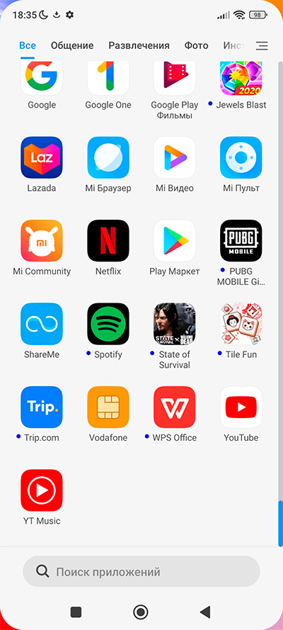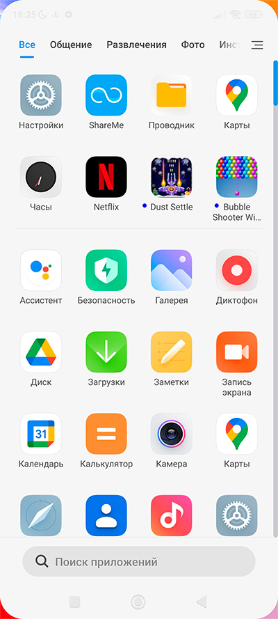 Установленные в системе приложения.