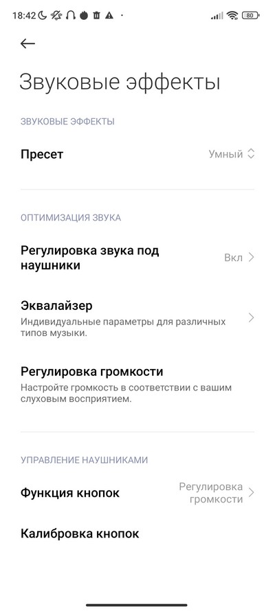 Как обычно, есть настройки под разные типы наушников, звуковые эффекты.