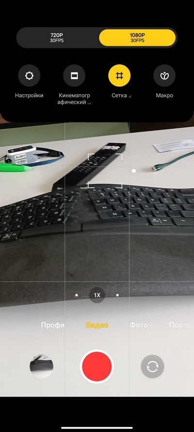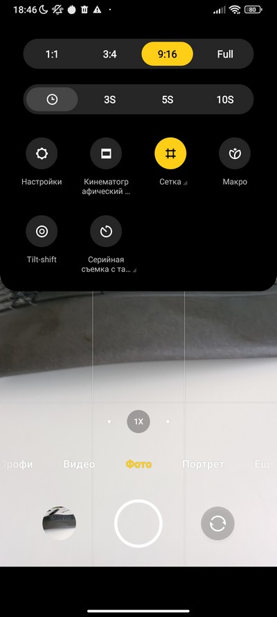 Интерфейс камеры. Снизу переключаются режимы: профи, видео, фото, портрет, 108 Мпикс, видеоблог (Vlog), и их набор настраивается. Выше переключение между сверхшириком, основной камерой и цифровым зумом (по умолчанию 2-кратный, но можно вызвать линейку зумов и масштабировать до 10-кратного). Сверху - пиктограммы различных переключателей и пиктограмма меню.  На правом скриншоте - окно меню с настройками.