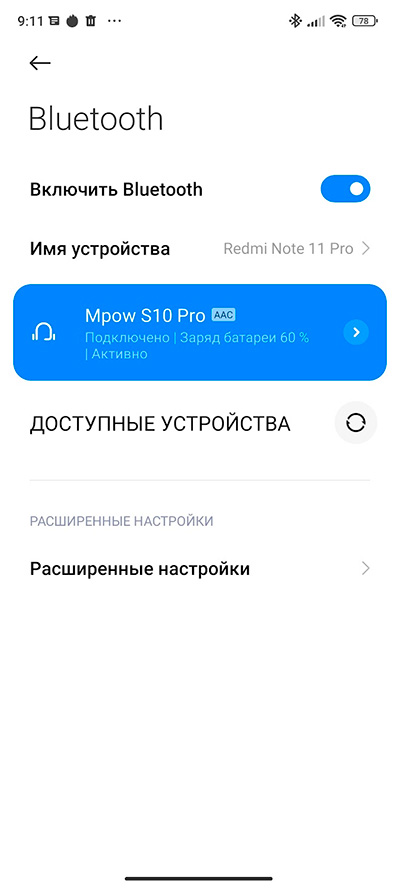 Для проверки беспроводного звучания подключил наушники Levn BH-M89 (они поддерживают и aptX, и aptX HD).  Подключились по aptX HD.