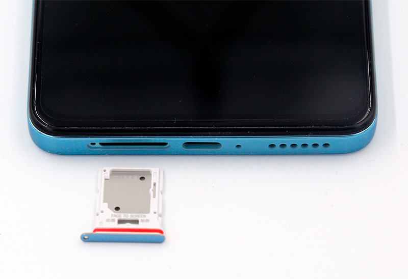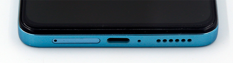 На нижней грани - вставка под сим-карты и карту памяти, порт Type-C, микрофон, прорези стереодинамика.