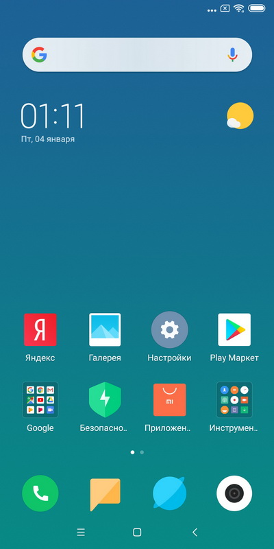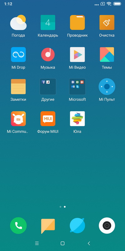 Android 8.1, оболочка MIUI 10.2. Главный десктоп и установленные в системе приложения.