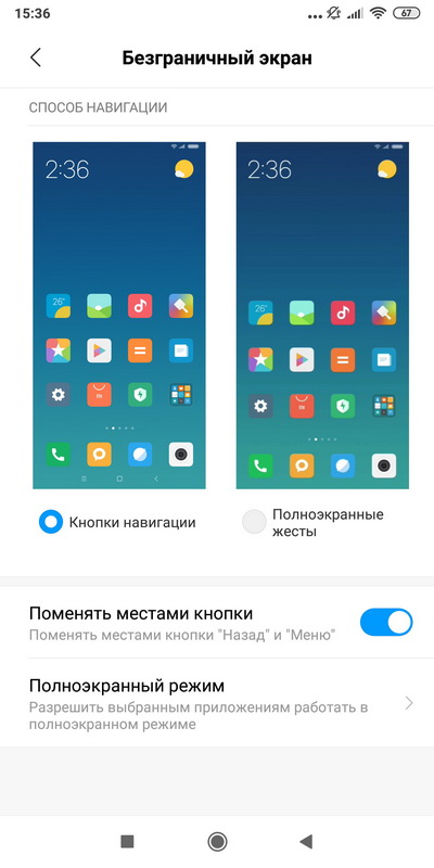 По умолчанию здесь используются обычные кнопки навигации, у которых можно менять местами "Возврат" и "Меню".