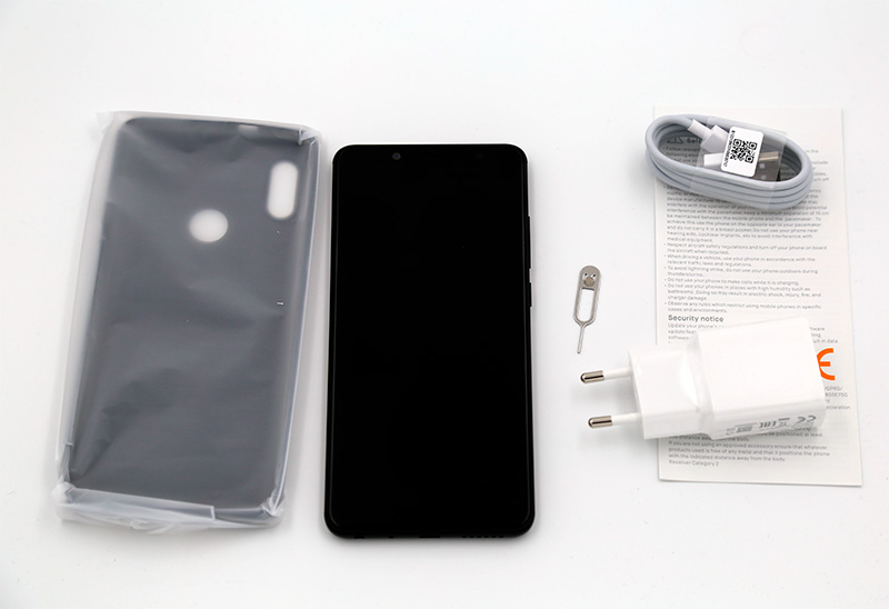 В комплекте: смартфон, инструмент для извлечения слота под сим-карты и карту памяти, адаптер питания 5V/2A, кабель USB - microUSB, сверхтонкий силиконовый чехол, коротенькая инструкция.