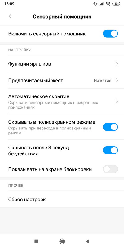 Сенсорный помощник (плавающая кнопка с выпадающими ярлыками).