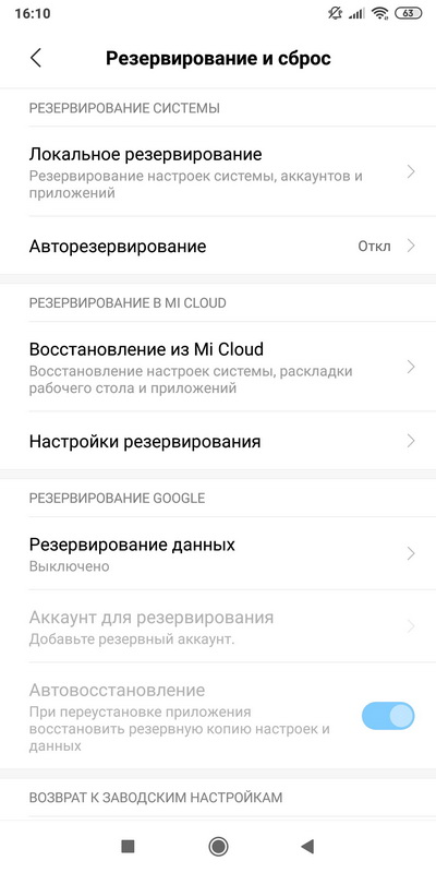 Встроенный бекап - в том числе и в облачный сервис Mi Cloud.