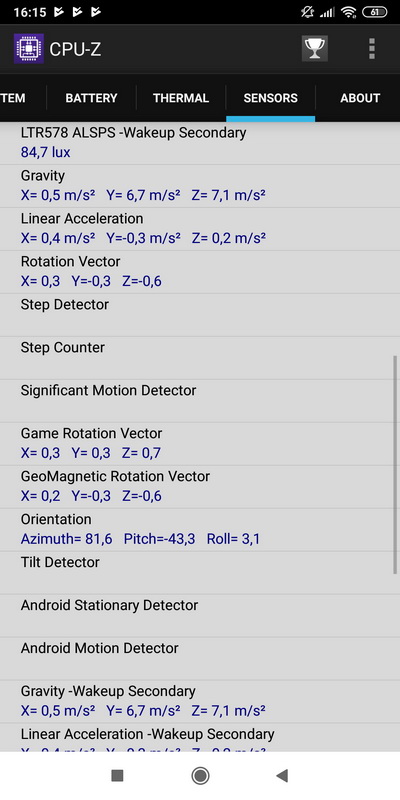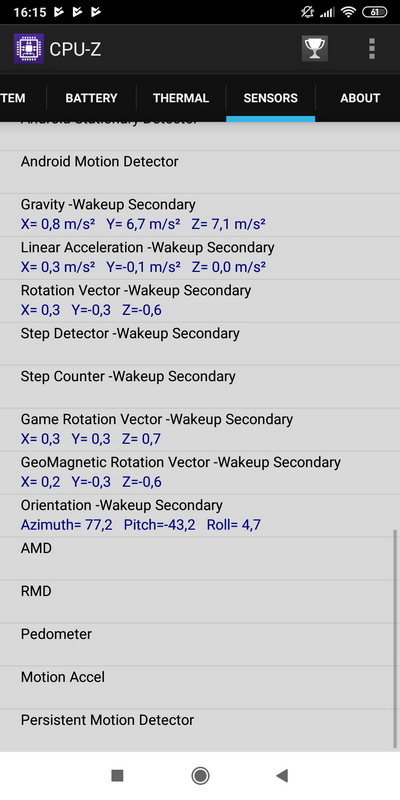 Дополнительно: датчики приближения, освещения, магнитометр, акселерометр, гироскоп