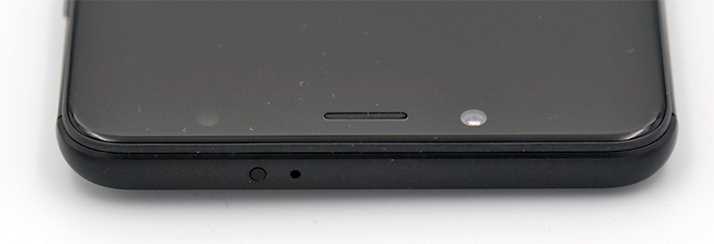 Металлический корпус из алюминиевого сплава, покрашенного в соответствующий цвет: черный, золотистый или голубой. На передней части никаких управляющих кнопок нет: снизу поле размером примерно в сантиметр, сверху миллиметров семь и там расположены датчики приближения и освещения, сетка разговорного динамика и камера.