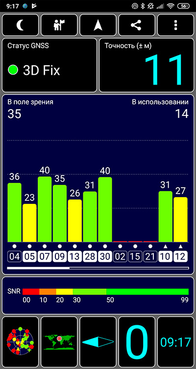 У Qualcom с определением координат обычно не бывает никаких проблем. Но я на всякий случай проверил. Координаты спутников даже при "холодном" запуске определяет практически мгновенно, во время навигации все работает как полагается.