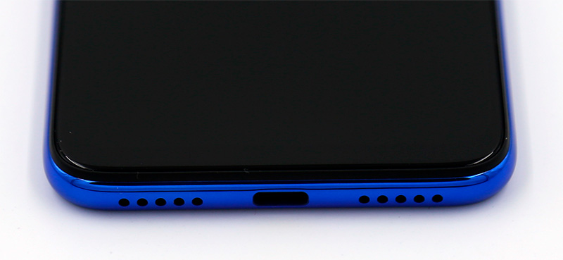 На нижнем торце - порт Type-С, прорези над динамиком и микрофоном.