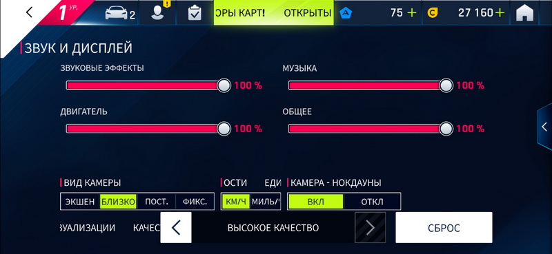 Меню настроек.