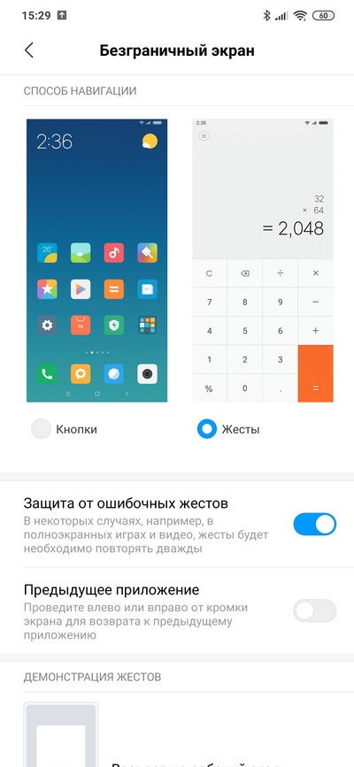 Традиционная для смартфонов Xiaomi возможность вместо экранных кнопок (настраиваемых) задать управление жестами. Это настраивается в пункте меню "Безграничный экран".