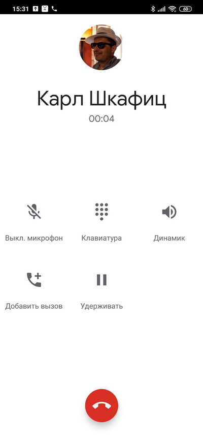 Режим разговора. Обратите внимание, что почему-то пропала возможность записи разговора - в других смартфонах Xiaomi она есть, насколько я помню.