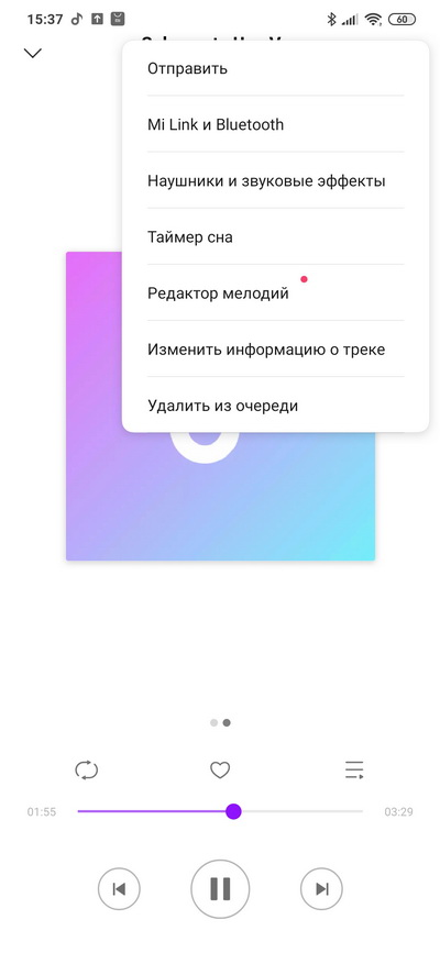Меню аудиоприложения.