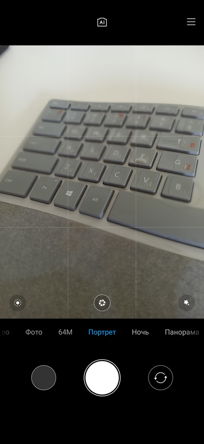Главное окно приложения. Для фото можно регулировать вспышку, HDR, включить AI, макрорежим, режим улучшения и вызывать настройки.