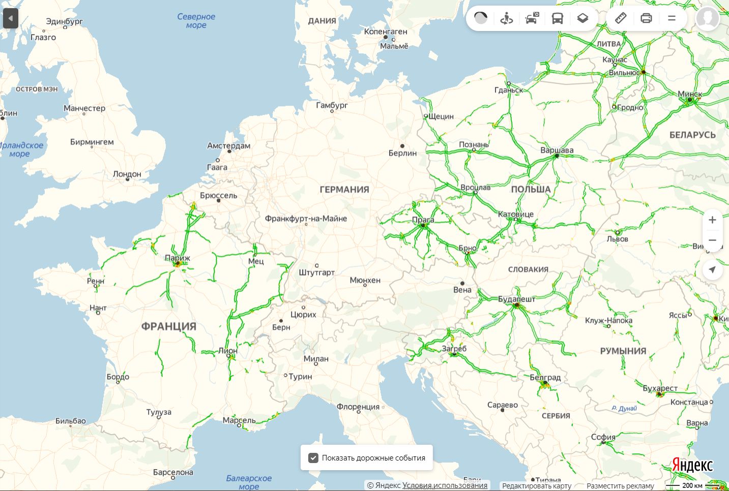 Ой, как интересно. Яндекс присутствует почти по всей Европе, за исключением Германии, Дании, Австрии, Швейцарии, Италии и Испании. Ну, вероятно, годик - другой, и туда дотянутся, будет вам счастье. Хотя как работают их пробки за территорией СНГ - я фиг знает, может, никак и не работают, чисто формальная картинка. Все ж зависит от количества активных пользователей...