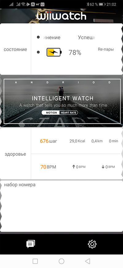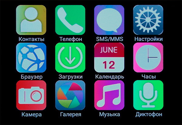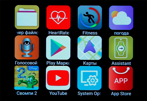 Также присутствуют следующие приложения (они выглядят достаточно стандартно, нет смысла показывать): SMS/MMS, контакты, загрузки, календарь (самый обычный), часы, камера (примитивная селфи-камера отстойного качества), диктофон, диспетчер файлов, монитор сердечного ритма (измеряет терпимо, проверял), погода, голосовой поиск. Ну и, понятное дело, вы можете поставить из Google Play любые приложения, которые могут работать для такого устройства.
