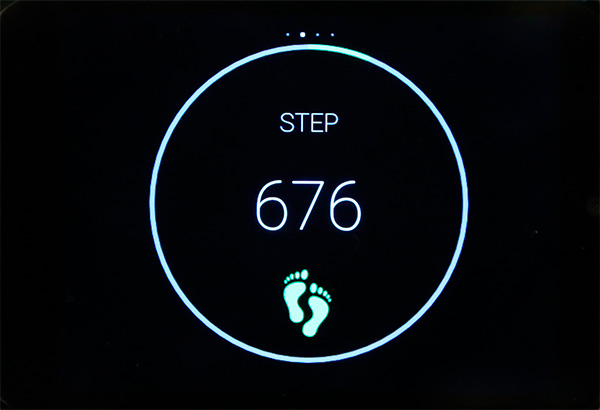 Свайп от главного экрана вверх - шаги, километраж, сожженные килокалории.